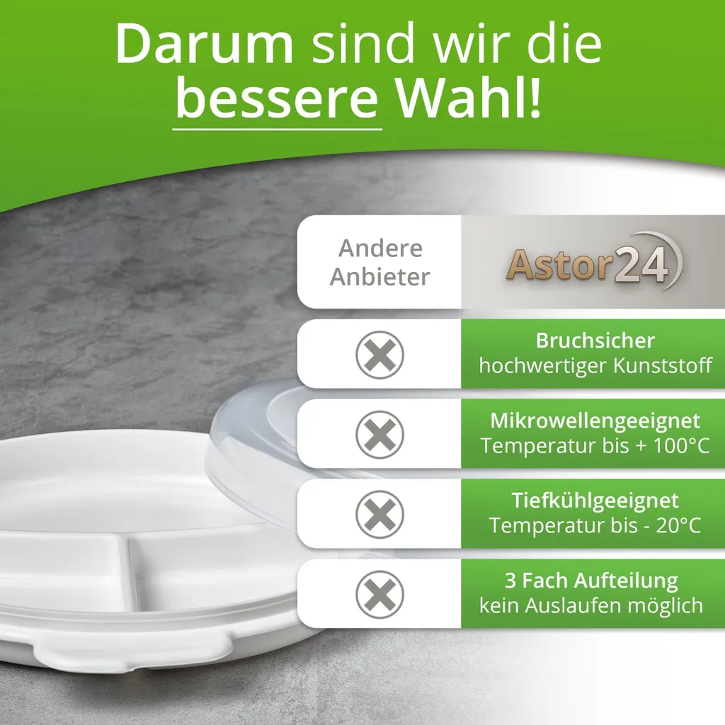 Diese Mikrowellenteller sind BPA frei und mit Belüftung. Die Teller sind mit einer Belüftung ausgestattet. Dadurch kann das Wasser beim Erwärmen verdunsten und dank des Deckels bleibt die Mikrowelle sauber.