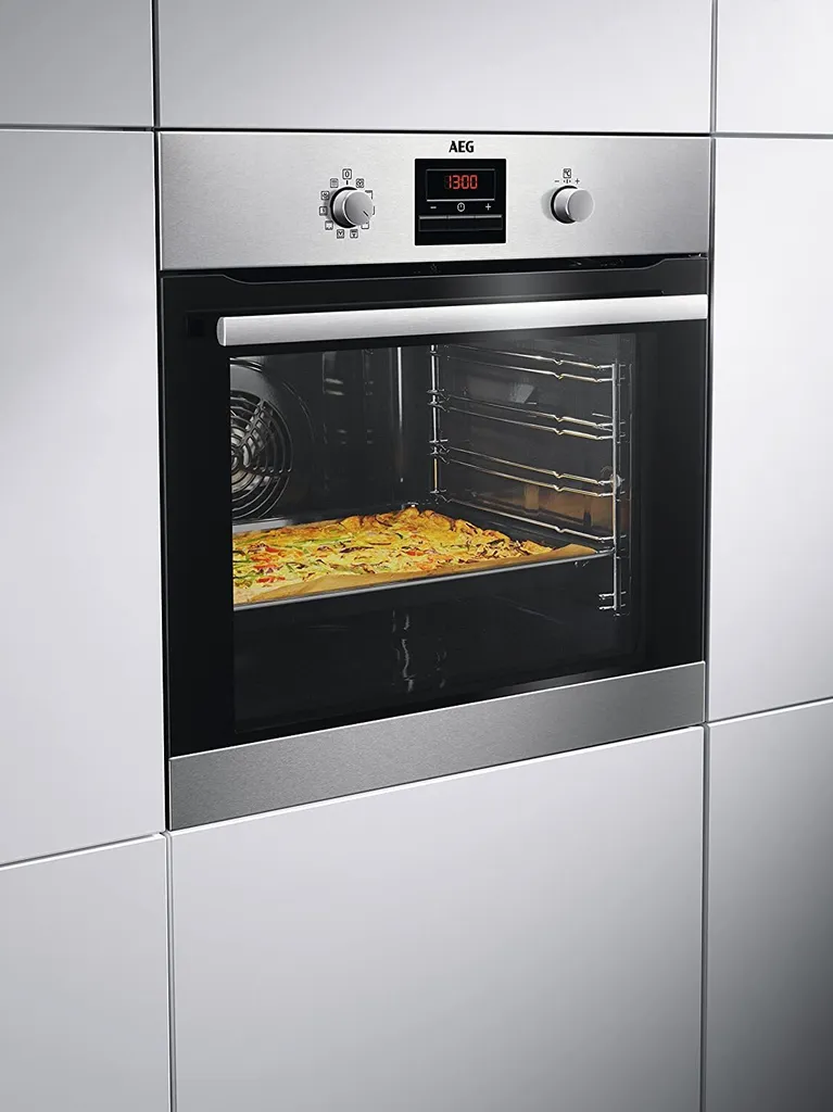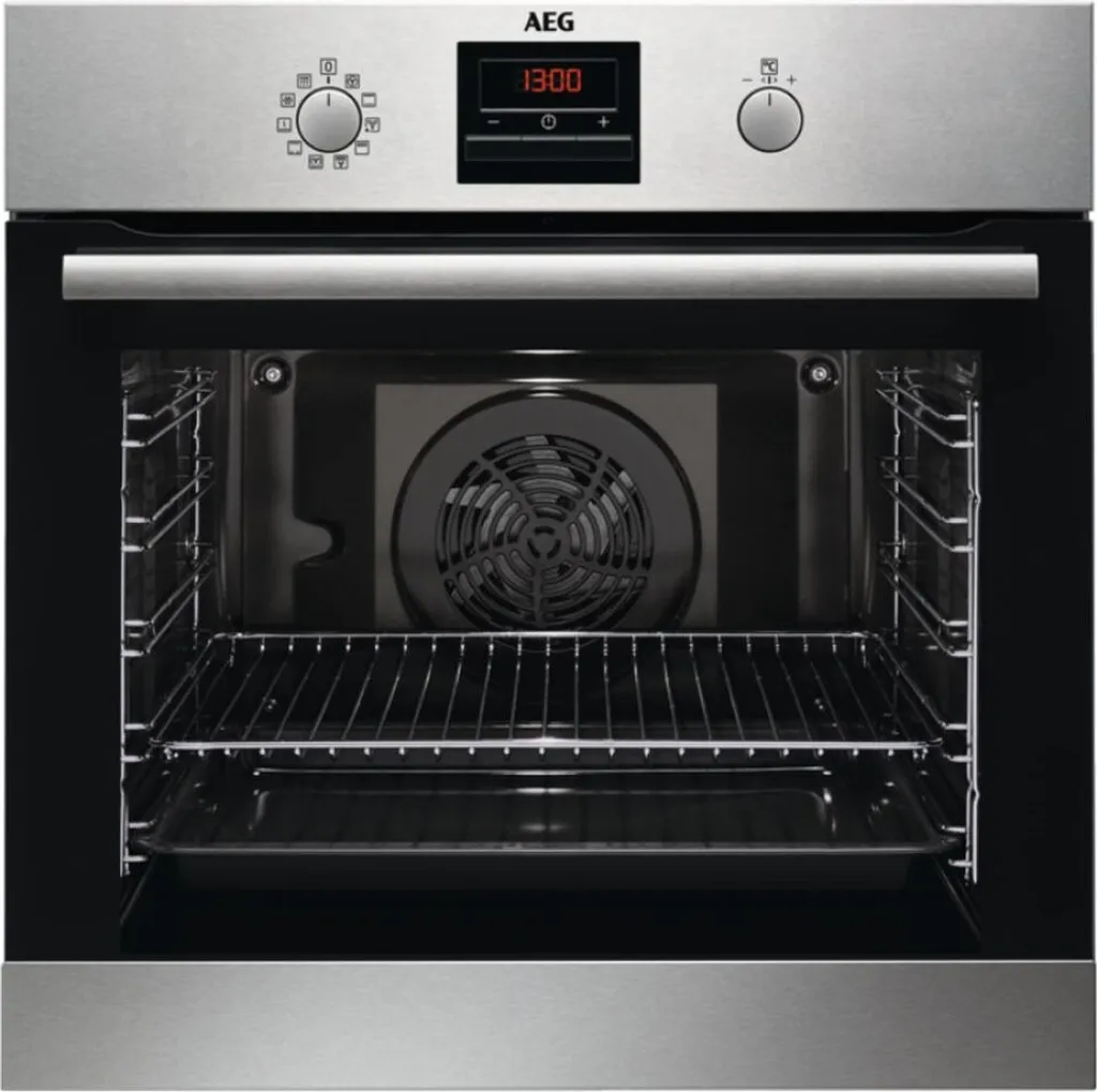 AEG BPS33102Z. Ofengröße: Medium, Ofentyp: Elektrischer Ofen, Garraumvolumen Gesamteinheit: 72 l. Geräteplatzierung: Integriert, Produktfarbe: Edelstahl, Steuerung: Tasten, Drehregler. Uhrtyp: Elektronisch, Timer-Typ: Digital. Energieeffizienzklasse: A+, Energieverbrauch (konventionell): 0,93 kWh, Energieverbrauch (erzwungene Konvektion): 0,69 kWh. Anzahl Lampe(n): 1 Lampen, Lampentyp: Halogen, Blitzeistung: 40 W