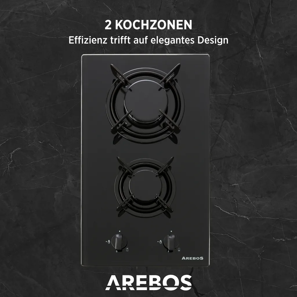 [LEISTUNGSSTARKES GASKOCHFELD] AREBOS 2-Brenner Gaskochfeld. Das Kochfeld verfügt über einen Schnellbrenner 3000W und einen Halbschnellbrenner 1750W. Es eignet sich ideal für jeden Einsatz, ob Sie nun braten, kochen, dünsten oder frittieren ist ganz egal