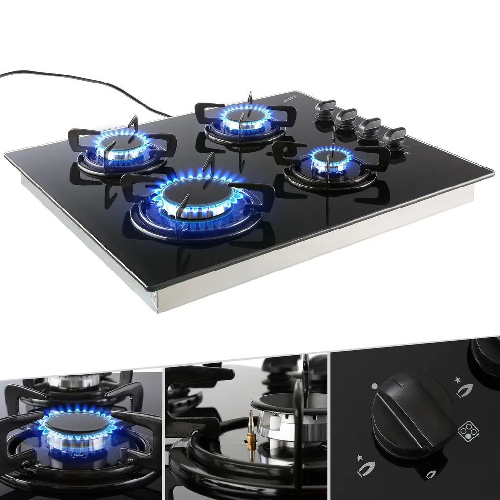 Der Arebos Gasherd zeichnet sich durch das moderne Design und die schöne Verarbeitung aus. Er ist ausschließlich für die Nutzung mit Erdgas geeignet. Außerdem kann man ihn unabhängig von einem Backofen einbauen.