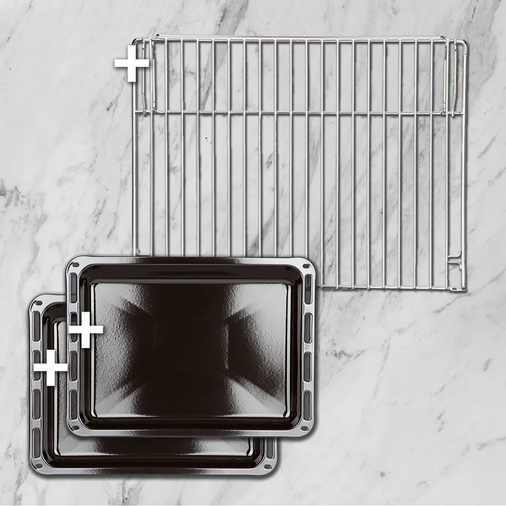 - Zubehör: 1 Grillrost, 2 Backbleche, Handbuch