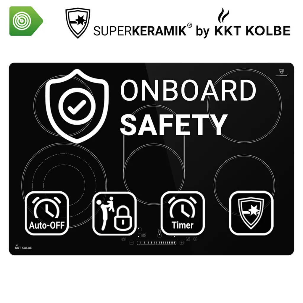 Das KKT KOLBE Heizspiralen-Kochfeld überzeugt durch eine hochwertige Verarbeitung und Funktionalität. Das Kochfeld verfügt über 5 Kochzonen. Die Bräterzone und Dreifach-Kochzone haben jeweils zwei/drei Kochstellen, so dass Sie den einen zentralen separat sowie zusammenhängend mit dem jeweiligen äußeren Abschnitt benutzen können. Alle Kochzonen verfügen über 15 Schaltstufen mit der Möglichkeit die Hitze konstant abzugeben. Herkömmliche Intervall- bzw. Heizphasen entfallen somit und Sie können Ihre Lebensmittel gleichmäßig Kochen und Braten. Die Oberfläche aus hochwertiger SUPERKERAMIK®-Glaskeramik sorgt für Qualität und Sicherheit und ist einfach zu reinigen. Das Gerät kann mittels TouchSelect Sensortasten bequem bedient werden. Mit dem Slider des Bedienpanels können Sie mit einem Wisch die Temperaturstufe der Kochplatten einstellen. Mit der Timer-Funktion können Sie Kochzonen zeitgesteuert abschalten. Die LED-Anzeige zeigt alle wichtigen Informationen bequem auf einen Blick. Ein eingebauter Sensor überwacht die Temperatur, um Schäden zu vermeiden. Das Kochfeld schaltet sich dadurch bei zu hoher Temperatur automatisch ab.