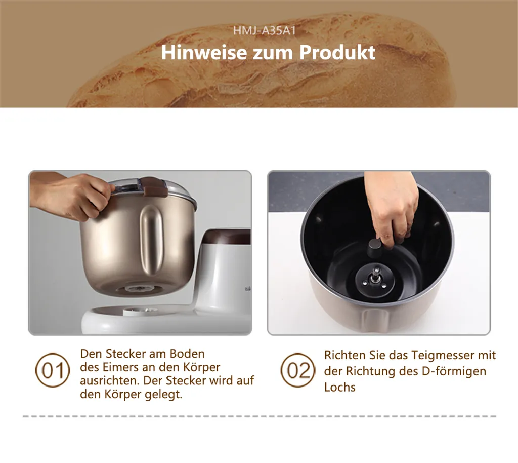 * 3,5 l antihaftbeschichtete Schüssel aus Aluminiumlegierung, kann 1,6 kg Teig herstellen