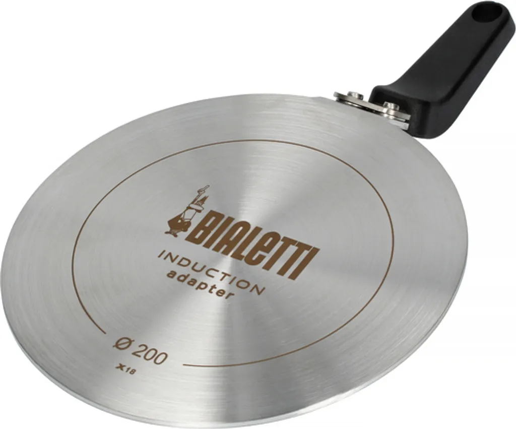 Adapterplatte für die Verwendung von nicht induktionsfähigen Kaffeekannen und Kochgeschirr auf Induktionskochfeldern. Hochwertiger Stahlkörper für eine perfekte Wärmeübertragung. Geeignet für Espressokocher bis zu 18 Tassen sowie Töpfe und Pfannen mit einem Durchmesser bis 20cm.
