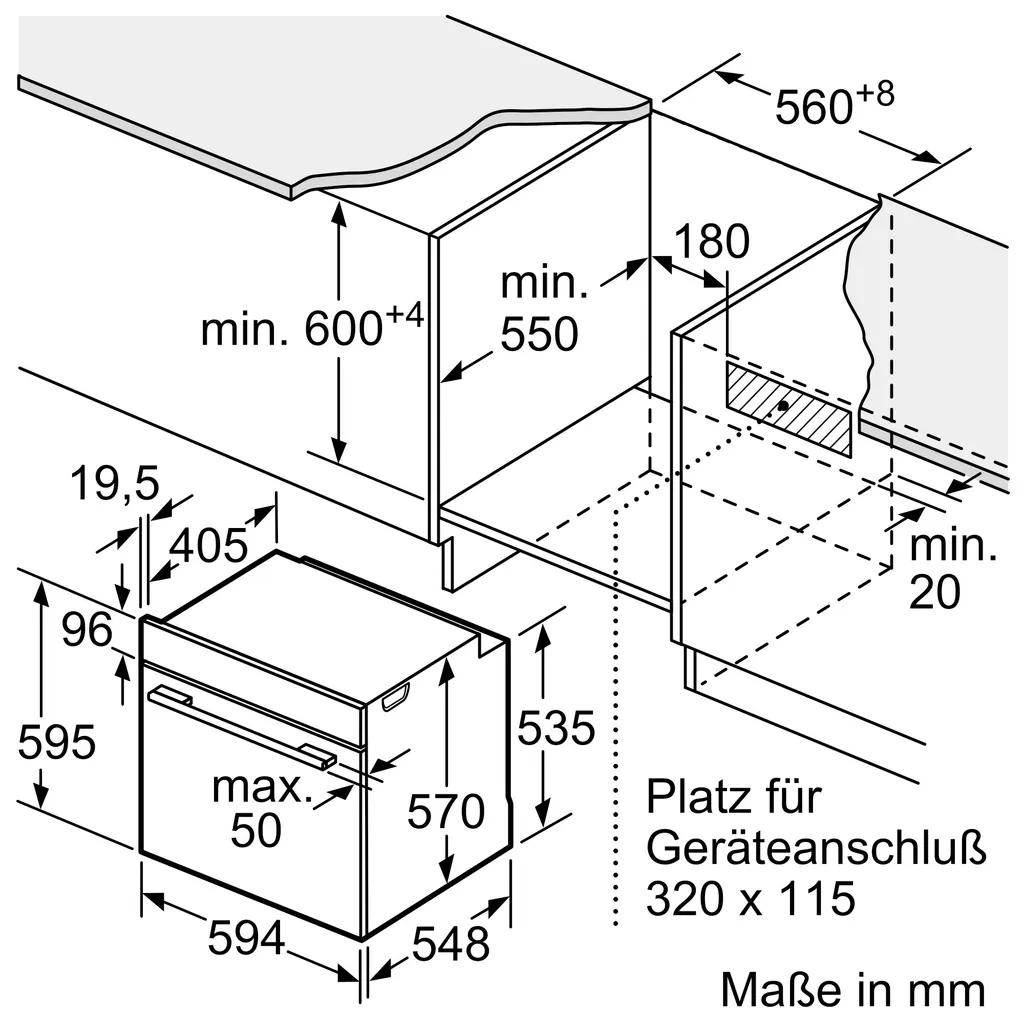 - Nischenmaße (HxBxT) 595 mm x 560 mm x 550 mm