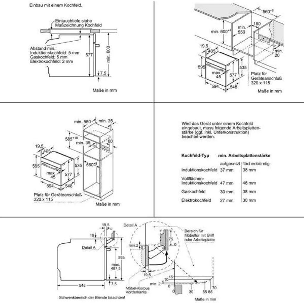 - „Maße und Einbauhinweise zu diesem Gerät gemäß technischer Zeichnung beachten“