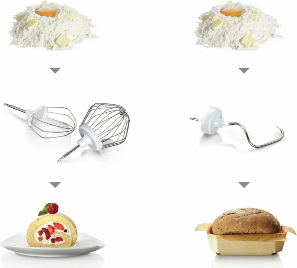 Knethaken mit Teigabweiser, Schlag- und Rührbesen