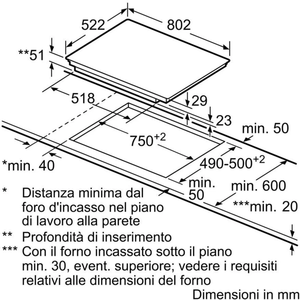 - Einbaumaße: (H/B/T) 55 mm x 780 mm x 500 mm