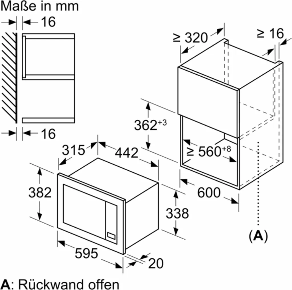 Nischenmaße (HxBxT): 365 mm x 560 mm x 320 mm