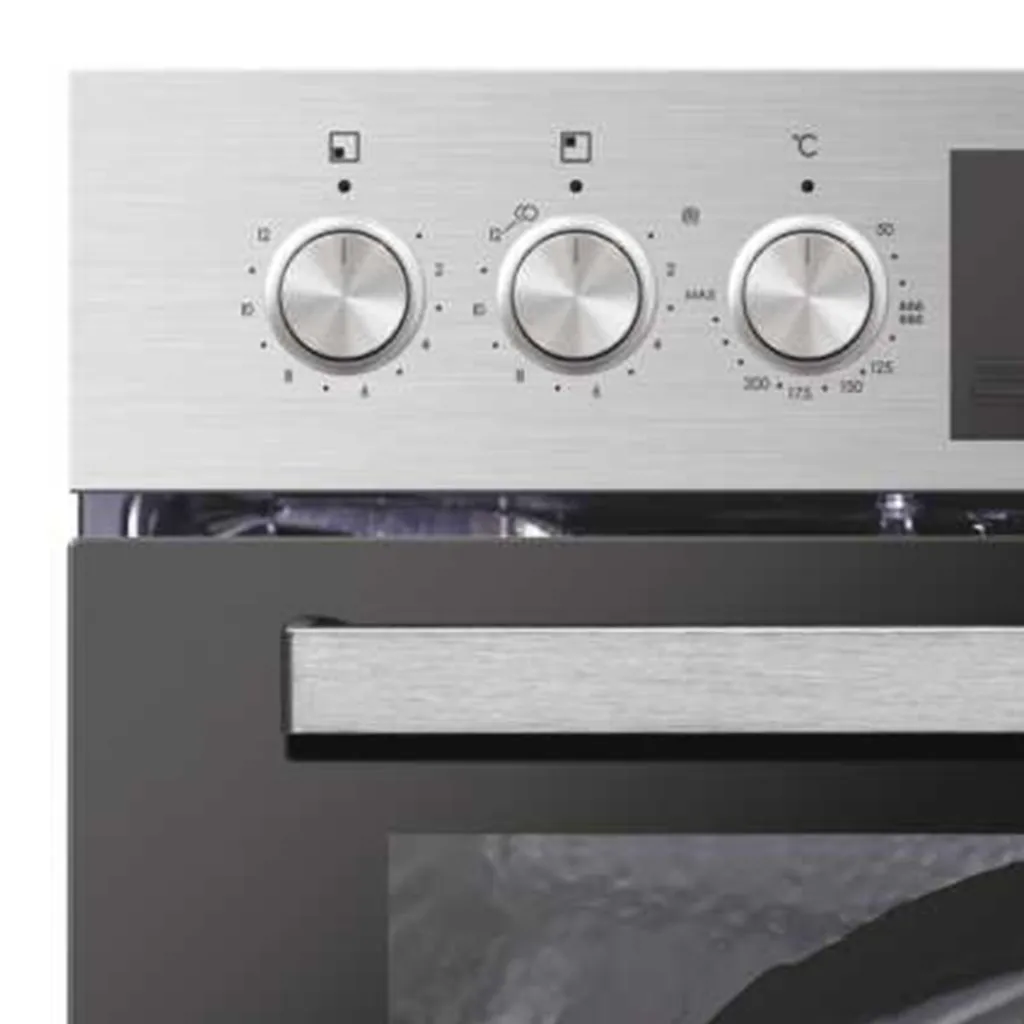 Herd: Farbe: Edelstahl; 2 fach Türverglasung Inkl. Zubehör: 1 x 35 mm Backblech, 1 x Backofenrost