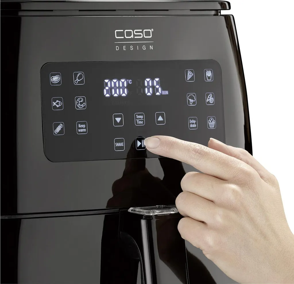NEU Die XL Heißluftfritteuse von CASO Design bietet eine Direktwahl aus 12 Automatik-Programmen. So können Fleisch, Fisch, Gemüse und vieles mehr gesund und fettarm zubereitet werden. Der „Shake-Reminder“ sorgt außerdem für besonders gleichmäßige und extra knusprige Ergebnisse. Denn er erinnert daran, den Korb während des Frittierens zu schütteln, damit Pommes & Co. gleichmäßig gegart werden.