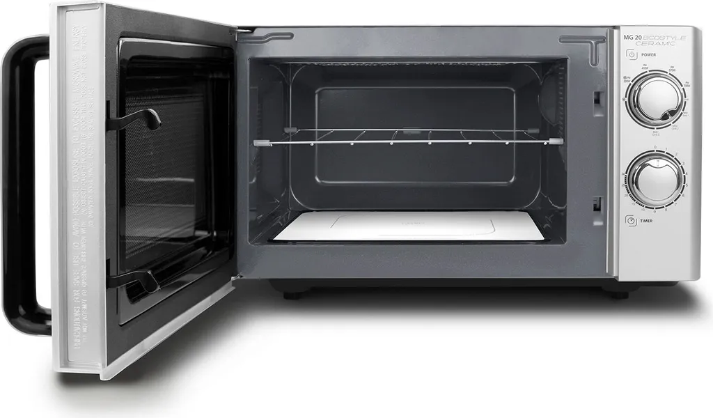 CASO MG 20 Ecostyle Ceramic! Die MG 20 Ecostyle Ceramic von Caso vereint die wichtigsten Funktionen einer Mikrowelle und einem Grill. Du kannst zwischen 5 Mikrowellenstufen und 3 Kombiprogrammen wählen. Dank des Einschub-Grillrostes hast du die doppelte Fläche zum Garen.