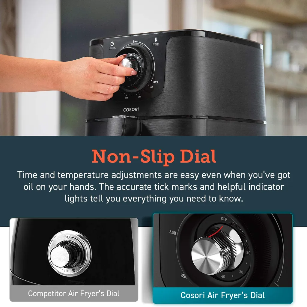 Mit dem Cosori Airfryer frittieren Sie auf gesunde Art und Weise ohne Öl. Die Kombination von zirkulierender Heißluft und der perfekten Gartemperatur sorgt dafür, dass Pommes Frites knusprig und Hähnchenschenkel saftig werden. Wenn die Garzeit abgelaufen ist und die Heißluftfritteuse einen Signalton von sich gibt, erwartet Sie ein einzigartiges Geschmackserlebnis.