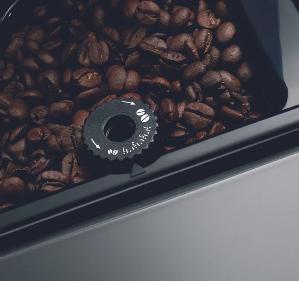 Die Bohnen werden dank der integrierten Mahltechnologie immer frisch gemahlen. Der Mahlgrad kann auch je nach Geschmack individuell angepasst werden. Das Stahlmahlwerk ist konisch und genau kalibriert, für einen hervorragenden Kaffeegenuss.