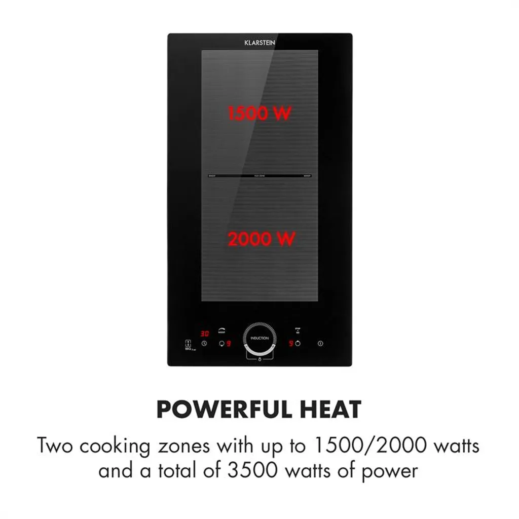 Auf den Punkt: Leistung einstellbar mit Temperaturschieberegler und programmierbarer Abschalttimer bis 99 Minuten, Flexible Kochfelder: VarioHeating ermöglicht die Kombination der Kochfelder zur gemeinsamen Nutzung, Kraftvolle Hitze: zwei Kochzonen mit bis zu 1500/2000 Watt und insgesamt 3500 Watt Leistung, Übersichtliche Bedienung: Glaskeramik-Oberfläche mit Sensor-Touch-Bedienfeld und Kochfeldmarkierungen, Energiesparendes Kochen: EcoThermal Control mit Anzeige zur Nutzung von Restwärme spart Energie und bringt Sicherheit, Mehr Power: jede Kochzone mit ThermoBoost-Funktion und jeweils bis 1800 und 2300 Watt Einzelleistung, Stop & Go: ThermalRecall System zum Speichern der Temperatur für Unterbrechungen beim Kochen, Sicheres Kochen: mit Überhitzungsschutz, Auto-Abschaltfunktion und Kindersicherung