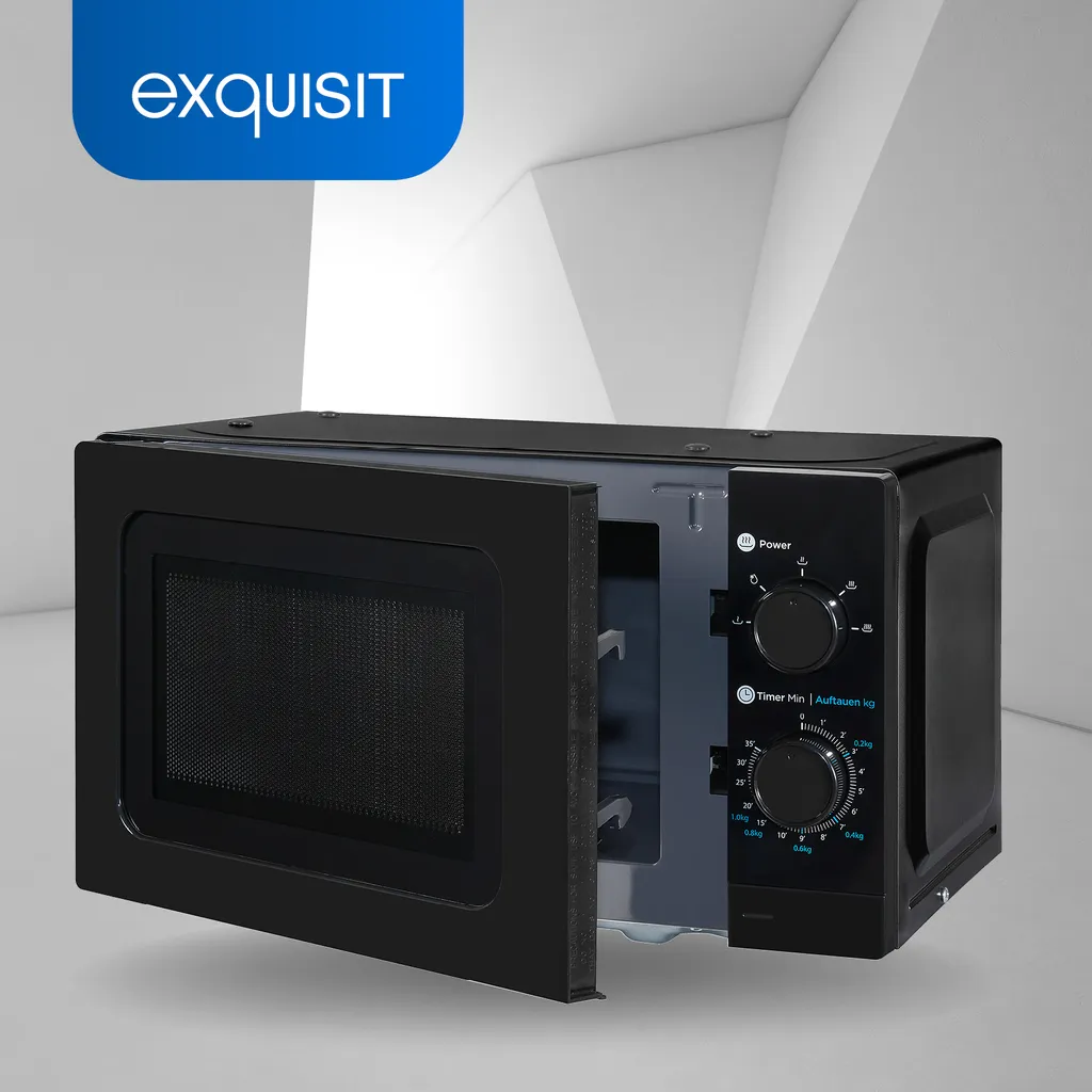 Die WP 700 J17-3 Schwarz mit der Gehäusefarbe Schwarz ist eine Unterbau-Mikrowelle aus dem Hause Exquisit und überzeugt mit zahlreichen Funktionen. Sie besitzt eine Front in der Farbe Schwarz und hat einen Garraum von 20 Liter. Durch Ihre freistehende Bauform kann die Mikrowelle überall problemlos positioniert werden. Sie benötigt nur einen Stromanschluss. Alternativ bietet das Gerät die Möglichkeit zur Unterbau-Montage. Das Gerät für sich hat folgende Ausmaße: 25,9 x 44,0 x 32,0 cm (Höhe/Breite/Tiefe). Die Gesamtleistung von 700 W ist unterteilt in 5 Stufen und bietet Ihnen größtmögliche Flexibilität in der Zubereitung und beim Aufwärmen Ihrer Speisen. Dank des integriertem Timers (manuell) haben Sie die Restlaufzeit Ihrer Programme jederzeit im Blick. Sogar bei schlechten Lichtverhältnissen behalten Sie Dank der hellen Innenbeleuchtung der Mikrowelle den Überblick. Für eine gleichmäßige Erwärmung Ihrer Speisen sorgt der integrierte Drehteller mit einem Durchmesser von 25,5 cm. Wenn Sie eine verlässliche und leistungsstarke Mikrowelle suchen, ist die WP 700 J17-3 Schwarz von Exquisit genau richtig für Sie.