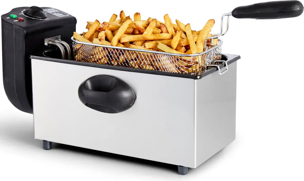 Mit dieser Edelstahl-Friteuse frittieren Sie verschiedene Lebensmittel kross und knusprig.