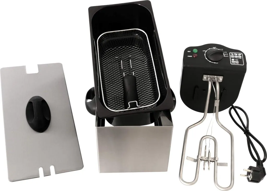Diese DESKI Edelstahl-Fritteuse mit einem Frittierkorb von 1,5 Liter Füllmenge eignet sich sehr gut für den Haushalt.
