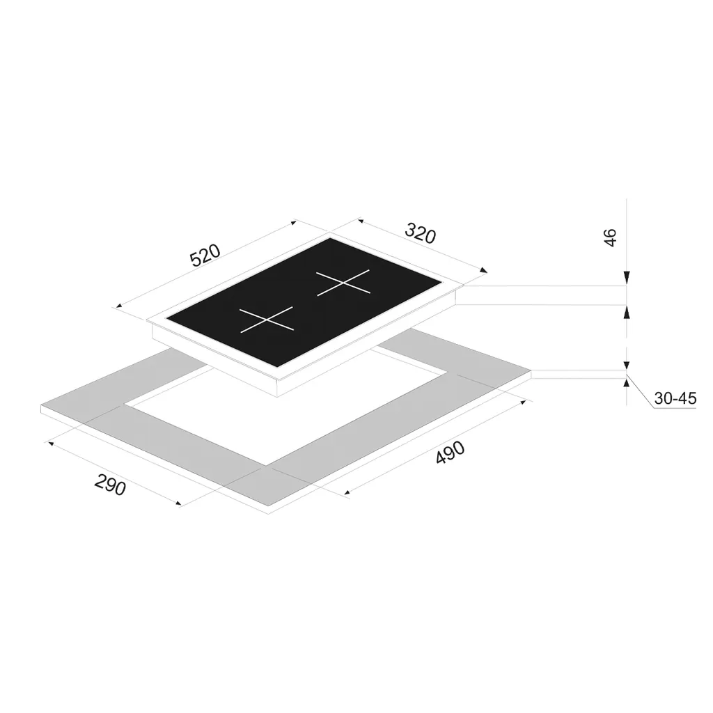 Die Breite des Kochfelds beträgt 32cm und eignet sich vor allem für kleine Kochnischen und enge Küchen. Das Gerät ist autark, kann also unabhängig von anderen Geräten in Ihre Küche eingebaut werden.