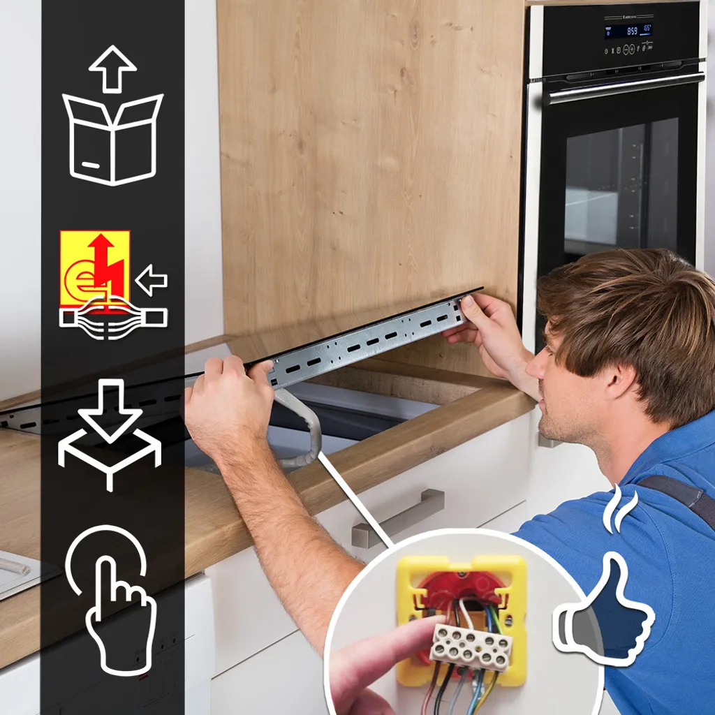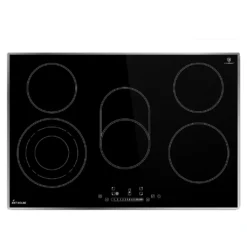 Der fest montierte Edelstahlrahmen sieht nicht nur gut aus, sondern schützt ihr Kochfeld auch vor Beschädigungen an den Kanten. Die Breite des Kochfelds beträgt 77cm und eignet sich für geräumige Küchen. Das Gerät ist autark, kann also unabhängig von anderen Geräten in Ihre Küche eingebaut werden.