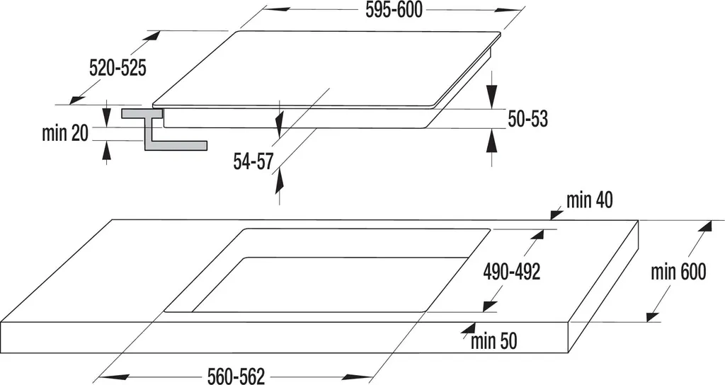 - Einbauraum Breite: 56 cm