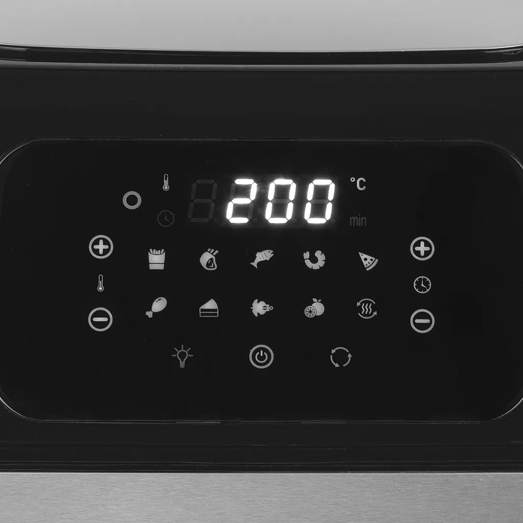 Mit der digitalen Heißluft-Fritteuse XL von GOURMETmaxx Frittieren, Braten, Grillen, Backen, Rösten, Dörren, Gratinieren und Erhitzen Sie in einer neuen Dimension! Auch zum Auftauen und Warmhalten eignet sich das moderne Multitalent. Die clevere Kombination aus schnell zirkulierender heißer Luft und einem Heizelement gart Ihre Lieblingsspeisen nicht nur extra schnell und schonend, sondern benötigt auch deutlich weniger Energie und Fett als herkömmliche Geräte. So können Sie jetzt knusprige Pommes frites, leckere Snacks, saftiges Fleisch u.v.m. fettarm und mit minimalem Aufwand genießen.