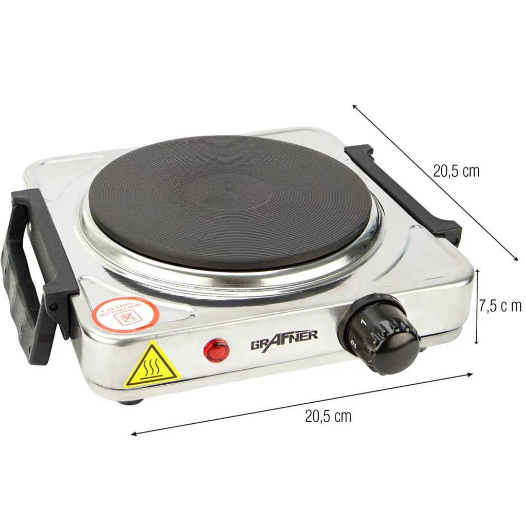 Lieferumfang: 1x Grafner Kochplatte 1000 Watt aus Edelstahl