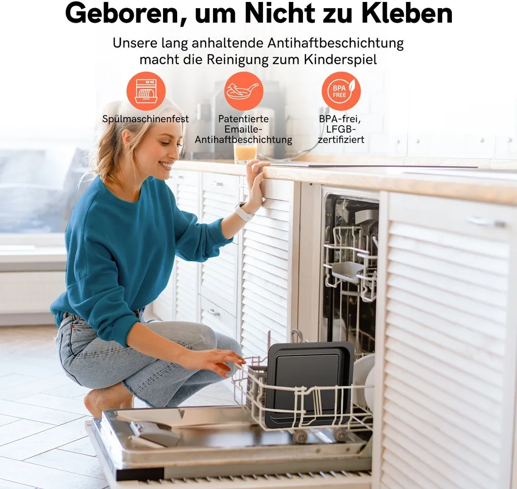 SORGENFREIE ENTWÜRFE: Hergestellt aus hochwertigem, lebensmittelechtem Edelstahl mit verzinktem Innenraum, langlebig und korrosionsbeständig, ohne Plastikgeruch. Die 4 spülmaschinenfesten Zubehörteile sind alle für eine hohe Belastung optimiert und halten mindestens 600 Spülmaschinengänge aus. Außerdem bieten wir 26 vom Chefkoch entwickelte Rezepte, eine Schnellstart-Anleitung und zwei voreingestellte Aufkleber.