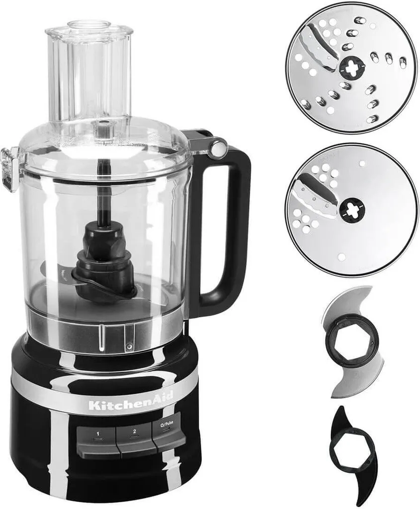 Dieser Food Prozessor hat zwei Geschwindigkeitsstufen und zeichnet sich durch seine einfache Handhabung aus. Durch das vielfältige Zubehör lässt er sich perfekt ergänzen und ist für jede Art von Gericht geeignet. Der dicht schließende Deckel, die Schüssel mit Tropfschutz, der abgedichtete Griff und die integrierten Sicherheitsvorkehrungen machen ihn zu dem neuen Küchenliebling. Mit diesem Küchengerät von KitchenAid kannst Du hacken, schneiden, zerkleinern, kneten, pürieren und mixen. Ab jetzt gelingen auch komplizierte Gerichte im Handumdrehen!