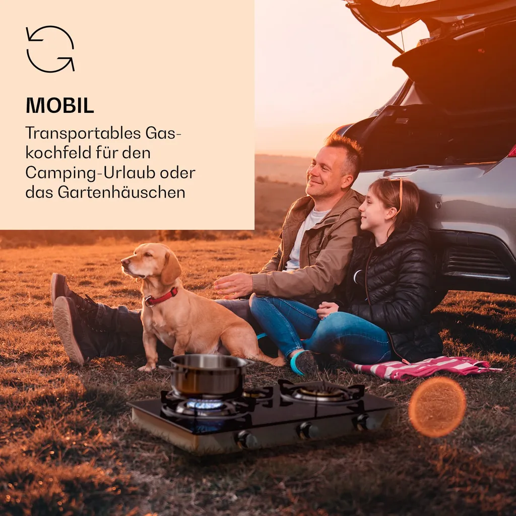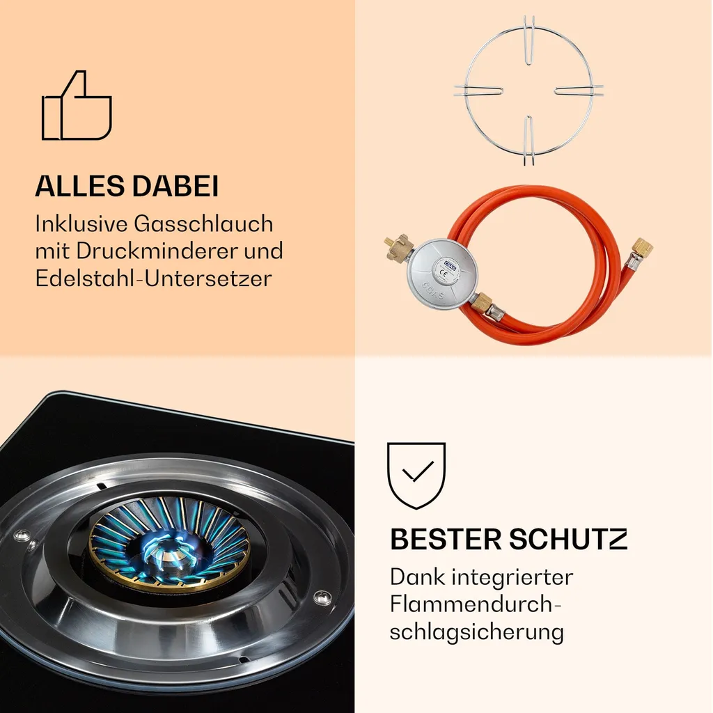 Einfach & flexibel: Das Klarstein Barzona 3 Gaskochfeld erlaubt optimale Platznutzung. Mit drei leistungsfähigen Brennern bringt der Campingkocher die Inhalte deiner Töpfe und Pfannen im Handumdrehen auf Temperatur. Bedient wird das Kochfeld unkompliziert mit drei leichtgängigen Drehreglern und einer integrierten Piezozündung. Die stufenlosen Leistungsregler ermöglichen dabei sanftes Köcheln genauso wie rasantes Erhitzen und Braten. Nach der Benutzung ist die Kochvorrichtung dank ihrer pflegeleichten Kombination aus Edelstahl und Glasoberfläche im Nu wieder sauber. Durch seine kompakte Größe eignet sich das Klarstein Barzona 3 Gaskochfeld ideal als mobiler Reisebegleiter, zum Beispiel bei Campingtouren oder für die Sommerfrische im Gartenhäuschen. Spielend einfach zur warmen Mahlzeit: Mit dem Klarstein Barzona 3 Campingkochfeld ist die kleine Küche immer dabei.