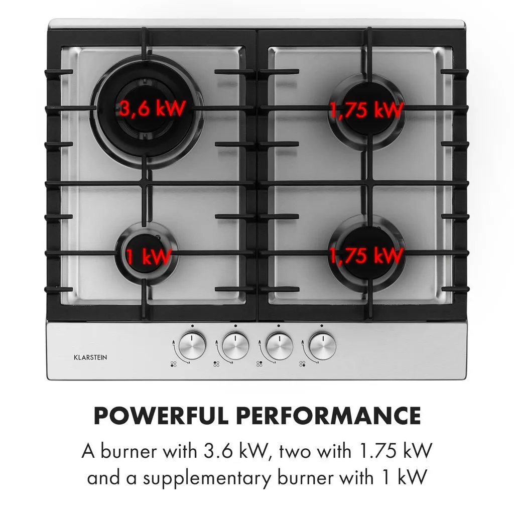 – Kraftvolle Leistung: ein Brenner mit 3,6 kW, zwei mit 1,75 kW und ein Zusatzbrenner