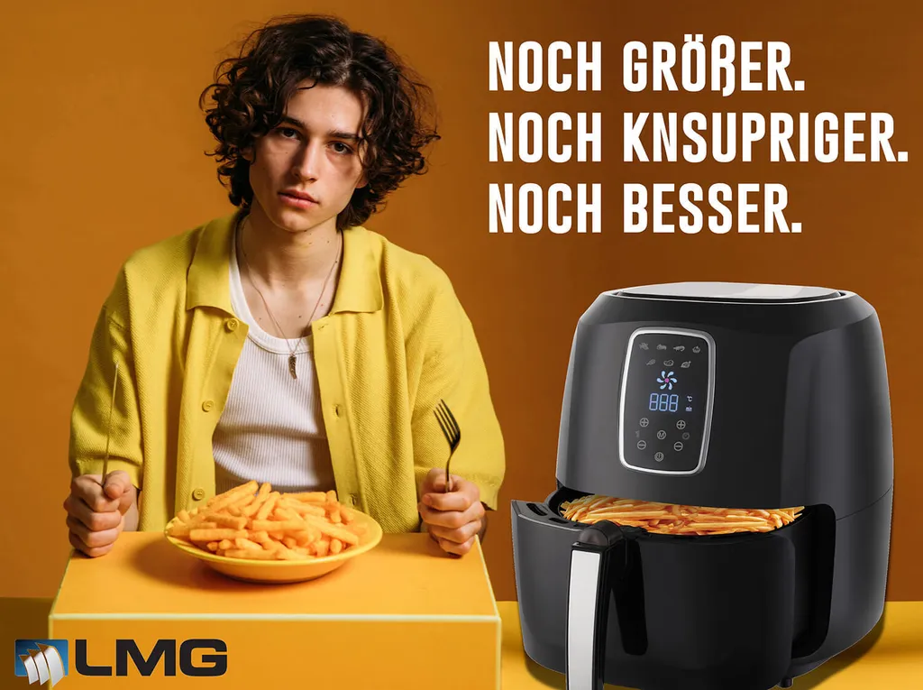 Die neue Premium-Heißluft-Fritteuse von LMG überzeugt durch den perfekten Mix aus edlem Design und einzigartigen Leistungsdaten. Frittieren, backen, grillen und rösten Sie komplett ohne ÖL. Der 5.2 Liter Behälter hat Platz für bis zu 7 Portionen Pommes und arbeitet dabei so leise, dass es nicht auffällt.