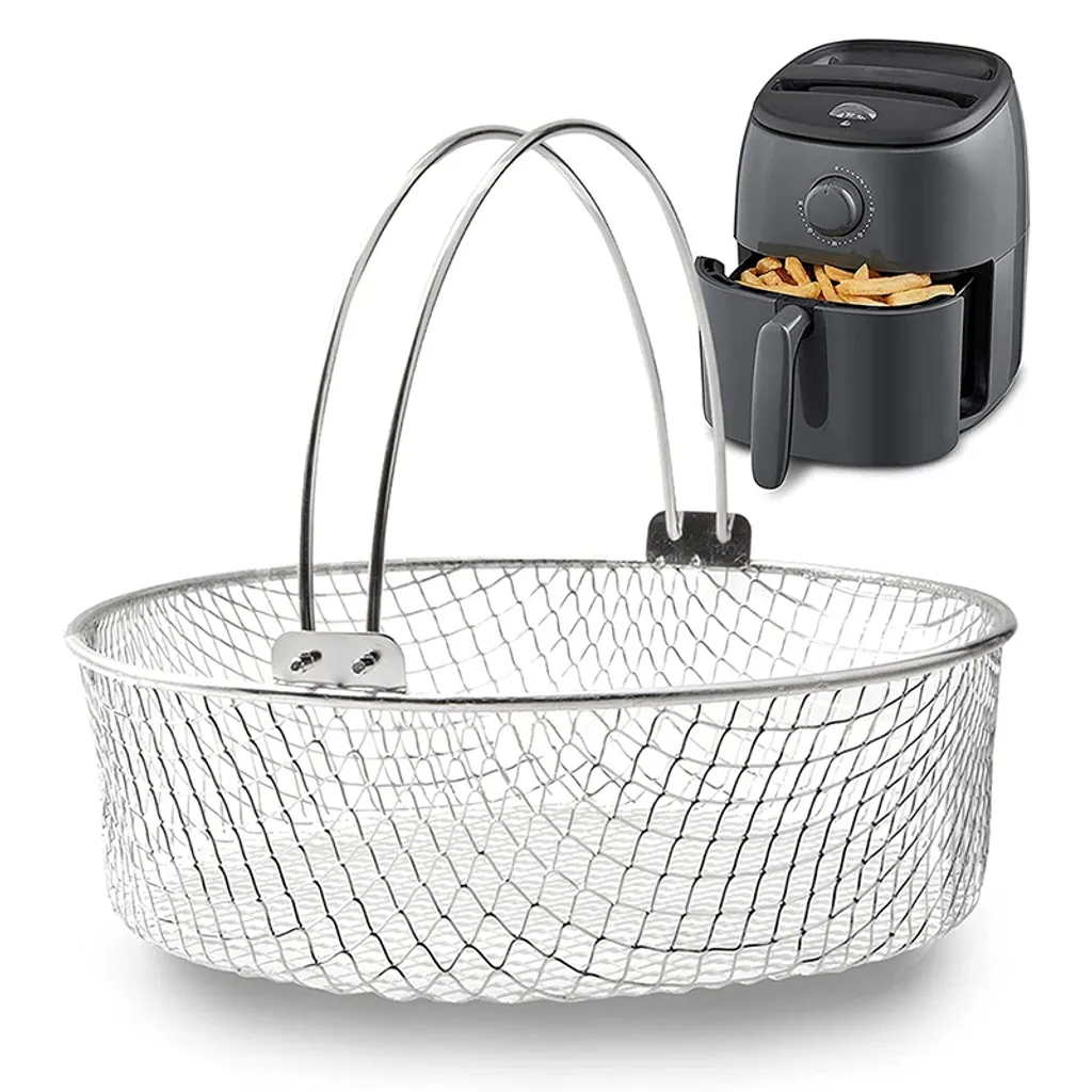 Mesh Fryer Basket ermöglicht es dem heißen Luftstrom in der Heißluftfritteuse, das Essen in alle Richtungen zu berühren, wodurch das Essen gleichmäßig erhitzt und köstlicher wird.