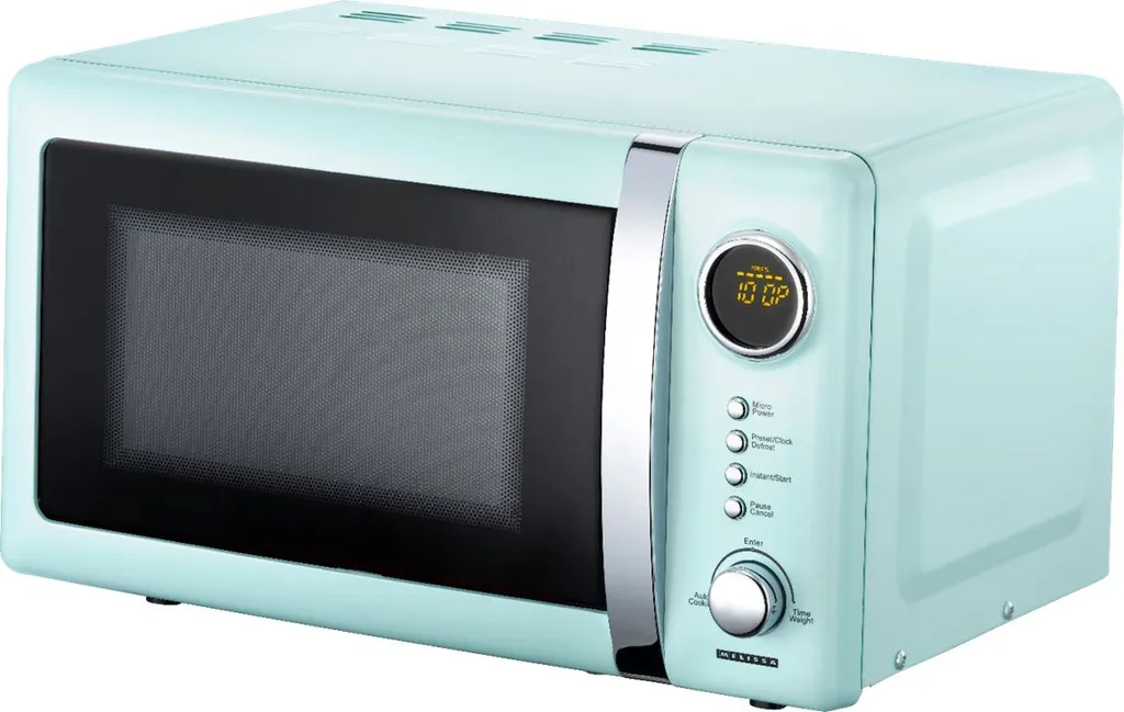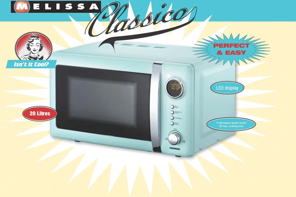 Diese Mikrowelle im klassischen Design der 50er Jahre der Marke Melissa begeistert nicht nur Nostalgie- und Retro- Fans, denn: