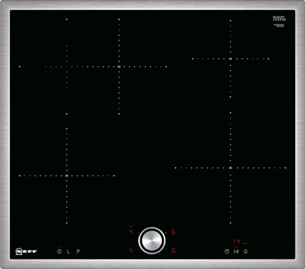 Neff N 70 T46BT60N0 – Induktionskochfeld – 4 Kochfelder – Nische – Breite: 56 cm – Tiefe: 49 cm – schwarz/Edelstahl – mit Rändern aus Edelstahl
