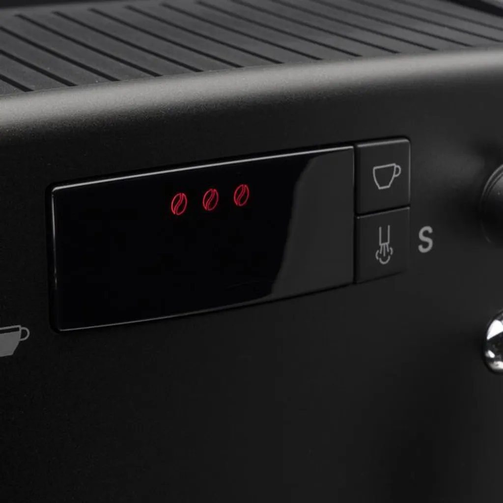 Einfach schön, schlicht und dabei so vielseitig: In mattem Schwarz erfüllt diese Maschine Kaffeeliebhabern zuverlässig alle Wünsche von köstlichen Kaffeevarianten bis Milchschaumkreationen – unschlagbar! Unser dunkles Einsteigermodell wird Ihnen lange Freude machen. – Digitales Symbol-Dialog-Display- Manueller Profi-Spumatore- Einfache Bedienung- Aromatica System mit 15 bar Pumpendruck- Bohnenbehälter (ca. 250 g)- Extra großer, entnehmbarer Wassertank (2,2 Liter)- Elegantes Design in mattem Schwarz mit Chromelementen- Leises Kegelmahlwerk aus gehärtetem Stahl- Herausnehmbare Brüheinheit für hygienische Reinigung- Kaffeetemperatur wählbar in 3 Stufen- Kaffeestärke 3-stufig einstellbar- ECO-Modus Stromsparfunktion- 0-Watt-Ausschalter- Hygiene-Pflegeprogramme: Reinigen, Entkalken und Spülen auf- Knopfdruck- Kaffeeauslauf bis zu 14 cm höhenverstellbar- Automatische Füllstandsüberwachung für Wasser- Mahlgrad 3-stufig einstellbar- Tassenabstellfläche- Pulverfach für eine Portion Pulverkaffee- Aromaschutzdeckel- Inklusive Reinigungstabletten, Milchschlauch und Portionierlöffel