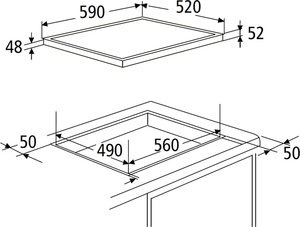 Abmessungen Aussägung Kochfeld Breite: 56,00 cm