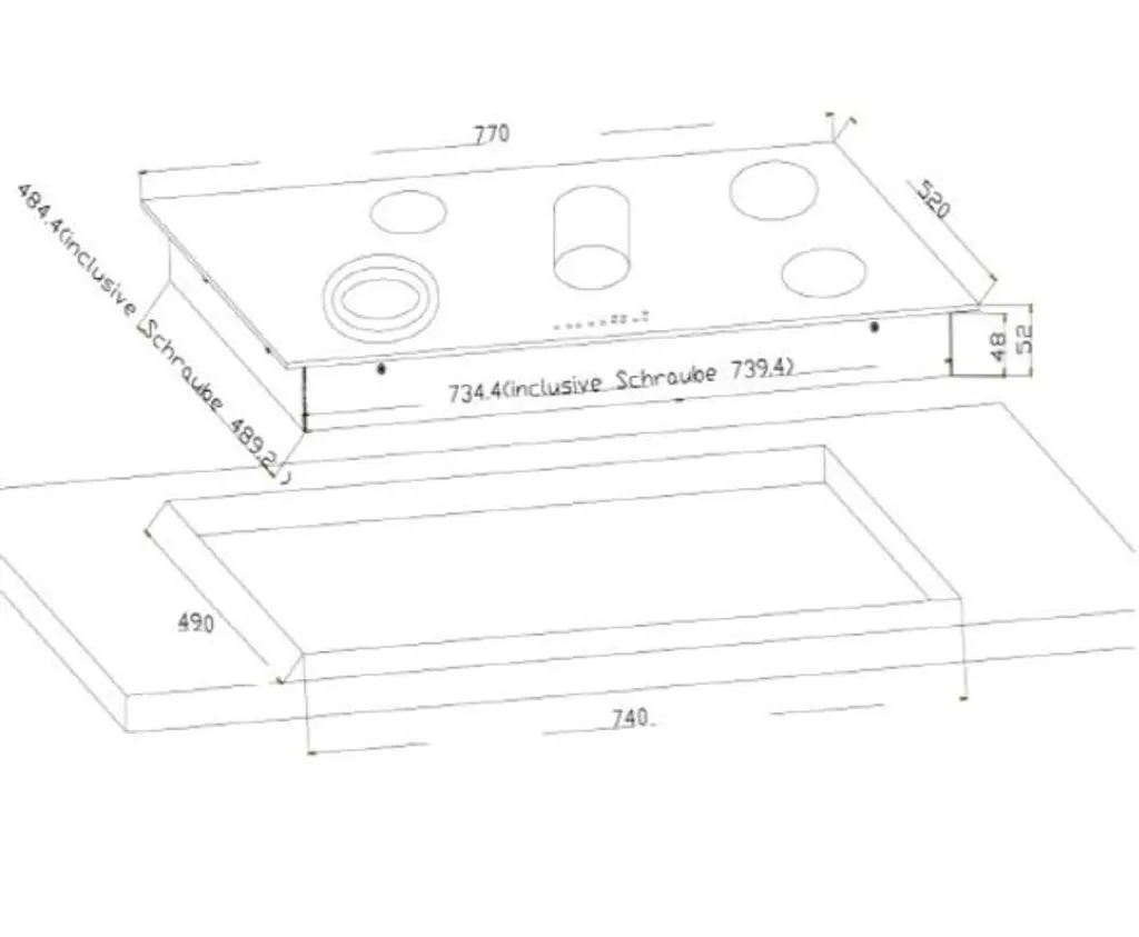Abmessung Kochfeld H X B X T in cm: 5,20 x 77,00 x 52,00
