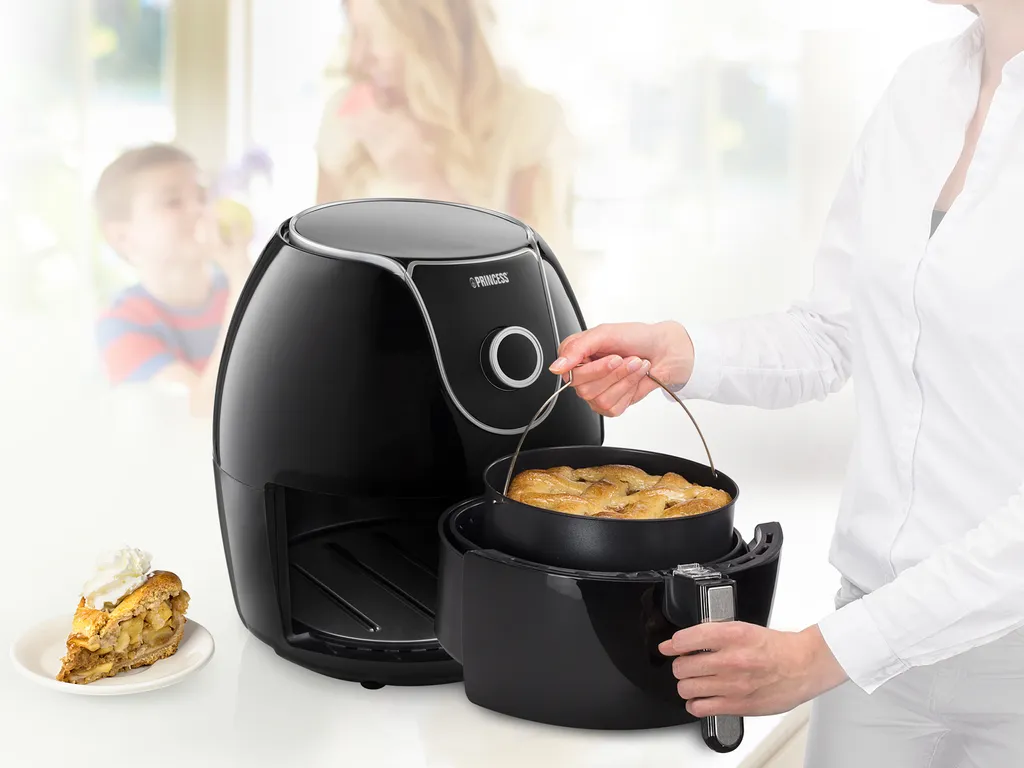 Dank des besonders großen Einsatzes passt eine 22 cm große Backform in den Innenbehälter des Princess Aerofryer. Mit der beiliegenden Backform können Sie einen Apfelkuchen oder eine Quiche für die ganze Familie backen. Außerdem können Sie mit dem Aerofryer Gemüse oder Fleisch auf einfache Weise mit weniger Fett und somit gesünder braten. Mit dem Aerofryer gibt es keine lästigen Gerüche oder Berge von Abwasch mehr, sondern einfaches und gesundes Garen an jedem Tag der Woche.