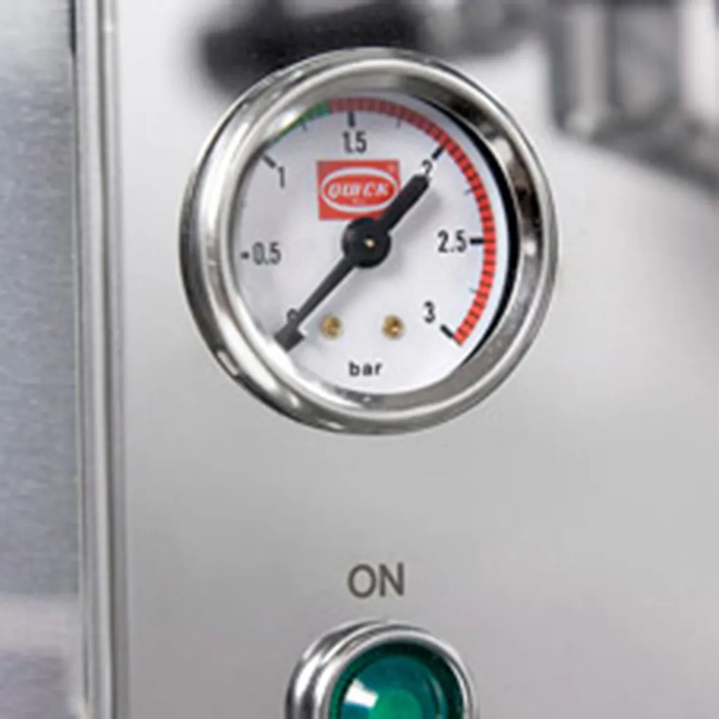 Die 0981 Rubino aus dem Hause Quick Mill ist ein ideales Zweikreiser Einstiegsmodell. Dadurch können Sie Kaffee und Dampf zeitgleich beziehen. Eine perfekte Maschine für alle, die gerne Espresso trinken aber auch Cappuccino genießen möchten. Durch ihr kompaktes, klassisches Design passt sie in jeden Raum. Ausgestattet ist die Quick Mill 0981 Rubino mit einer manuellen E61 Brühgruppe, 2 Manometern und dem Quick Mill Pulsor, der für weniger Vibration sorgt. Ein weiterer Vorteil sind die verstellbaren Edelstahlfüße, mit denen Sie ganz bequem die Maschine anpassen können. Neu gestaltete Leuchten auf der Front zeigen Ihnen Betriebszustand, Heizung und Wasserstand an.