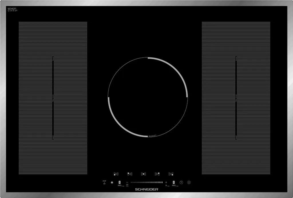 Autarkes Induktionskochfeld, 77 cm breit, 5 Induktionskochzonen davon 2 Doppel-Flexzonen, Sensor Touch / Slider Funktion, Booster, 9 Leistungsstufen