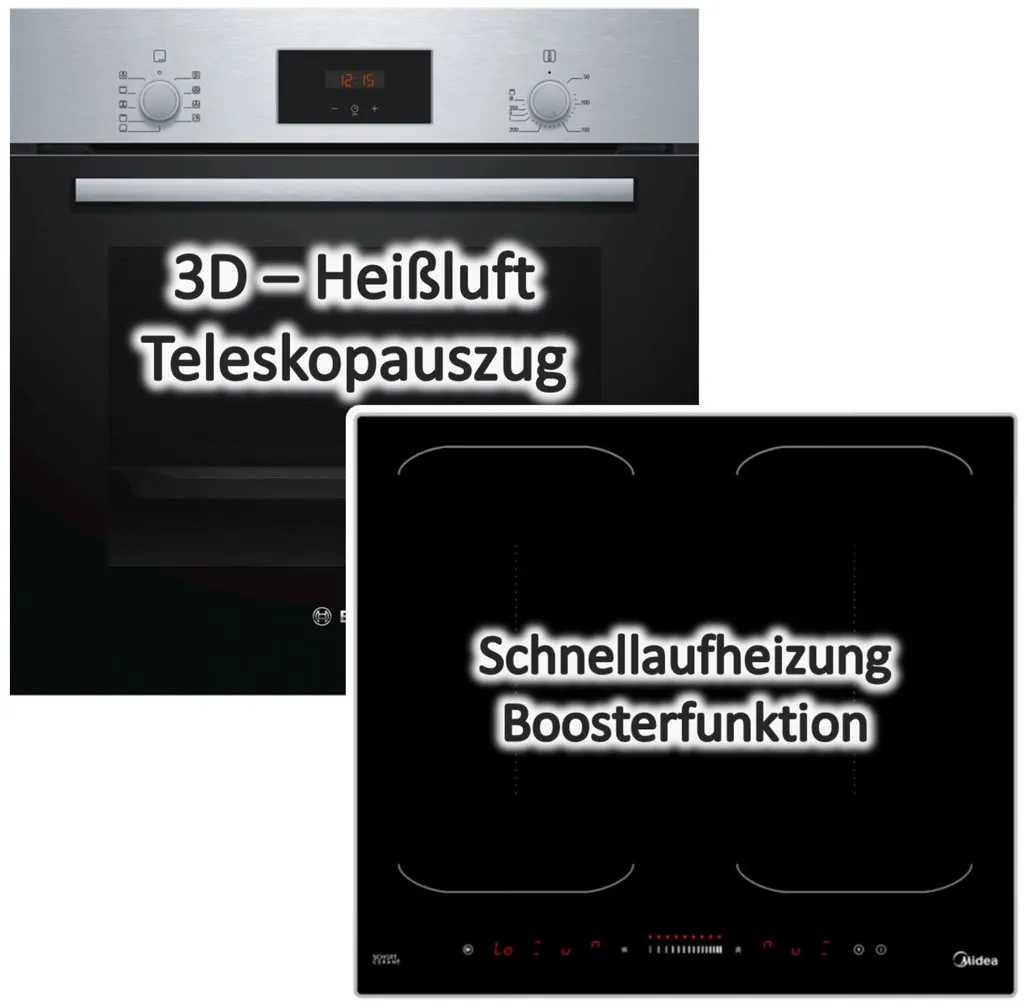 HERDSET autark bestehend aus Bosch Multi-7 Backofen + 60cm Induktionskochstelle Flächeninduktion + Teleskopauszug