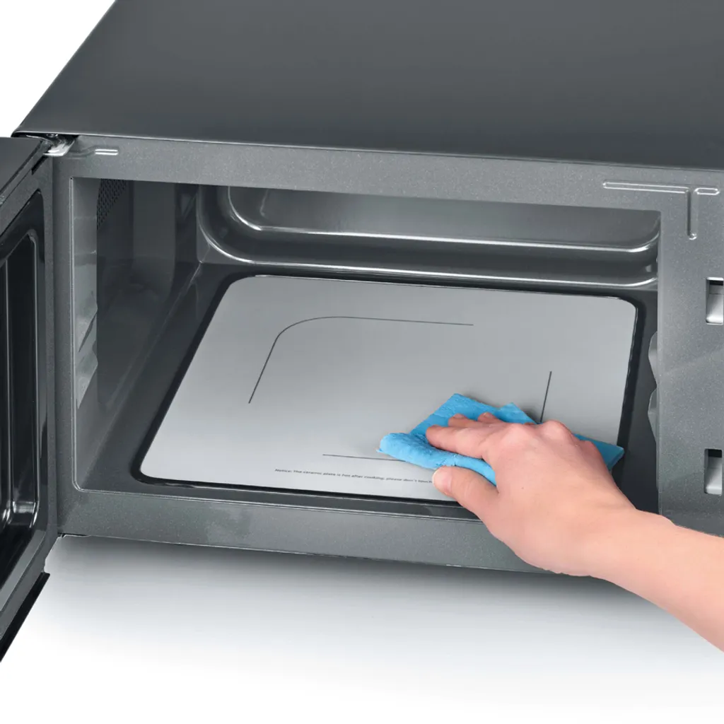Perfektes Erwärmen, Garen und Backen ganz ohne Drehteller ist durch die verbaute Keramikboden-Technologie in der Mikrowelle von SEVERIN möglich. Die Grill- und Ultra-Heißluftfunktion sorgt zudem für problemloses Überbacken und Grillen direkt in der Mikrowelle.