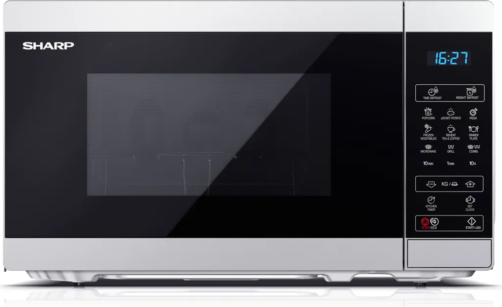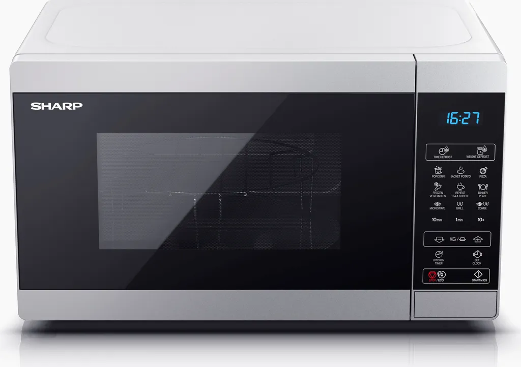 Großzügiges Mikrowellengerät von SHARP in zeitlosem Design: Ob Auftauen, Erwärmen, Grillen oder Garen, das Gerät eignet sich ideal für schmackhafte Fleisch- und Fischgerichte, Gemüse oder das Zubereiten von Popcorn.
