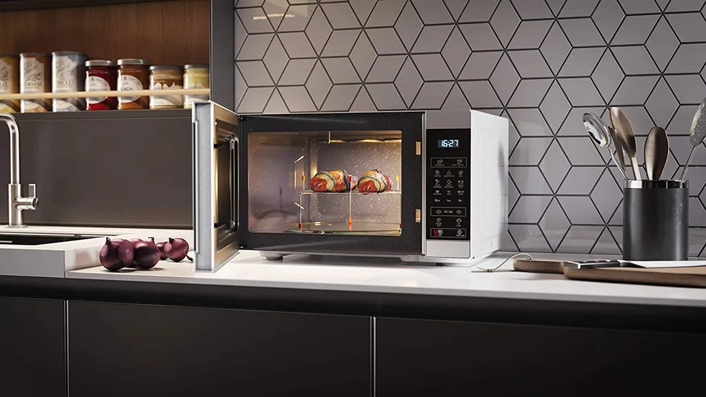 Mit einem Fassungsvermögen von 20 Liter können Sie ganz einfach und schnell Speisen für mehrere Personen zubereiten. Zusätzlich erhalten Sie einen Drehteller (25,5 cm Ø) und einen Grillrost, mit dem Sie das perfekte Grillergebnis erzielen.