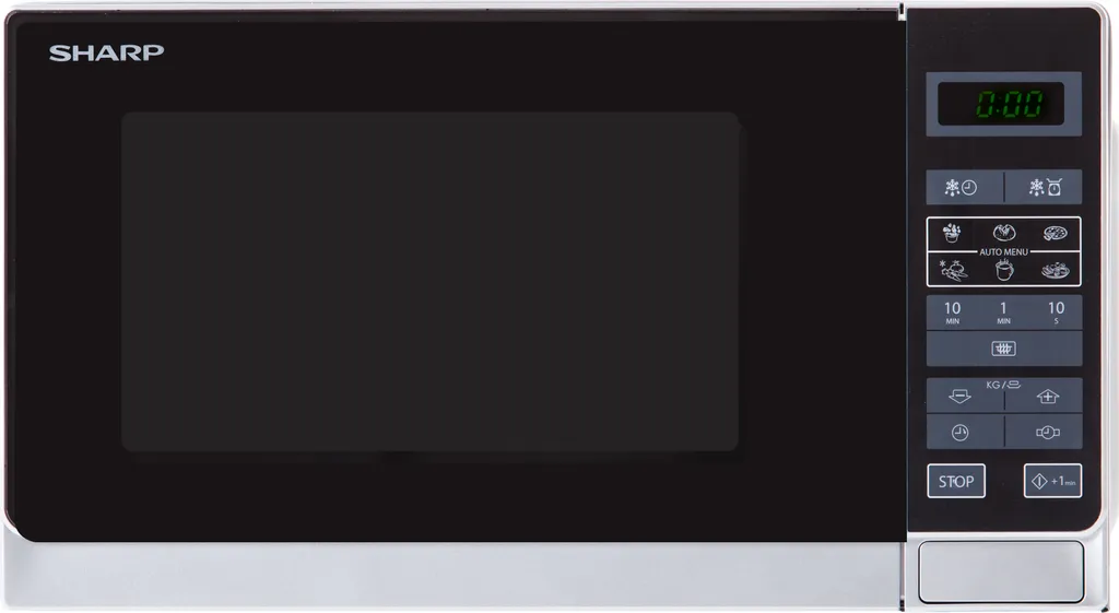 Das Solo-Kompakt-Mikrowellengerät von Sharp ist ein praktischer Küchenhelfer und leicht zu bedienen. Es eignet sich hervorragend zum Auftauen, Garen und Erwärmen von Speisen. Die Mikrowelle wird über eine elektronische Bedienung und LED-Anzeige bedient. Es stehen 8 voreingestellte Automatikprogramme bereit, die die Zubereitung erleichtern. Dazu verfügt das Gerät über eine Leistung von 800 Watt, die in 11 Stufen wählbar ist. Das Nutzvolumen des Garraumes beträgt ca. 20 Liter. Zur weiteren Ausstattung gehören eine Tageszeitanzeige, sowie eine integrierte Kindersicherung. Der mitgelieferte Glas-Drehteller besitzt einen Durchmesser von ca. 25,5 cm.