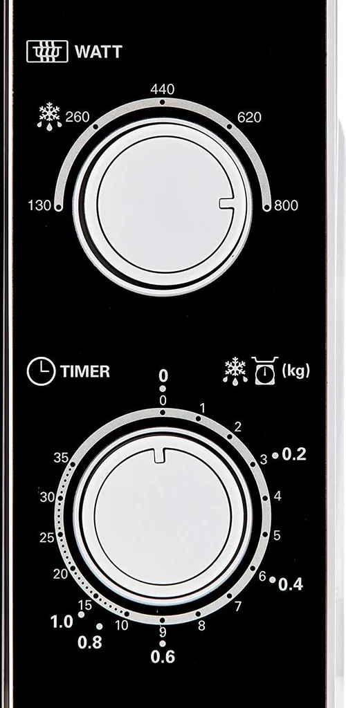 Die Firma Sharp bietet hier mit der R200WW eine 800 W starke Mikrowelle mit 5 verschiedenen Stufen zum Auftauen, Erwärmen oder Erhitzen und einen 20 Liter großen Garraum. Die Garzeit lässt sich bis zu 35 Minuten einstellen, somit lassen sich beispielsweise Speisen langsam und schonend auftauen. Der 25,5 cm große Glasdrehteller bietet genug Platz um seine Speisen zu platzieren. Durch den lackierten Innenraum lässt isch die Mikrowelle einfach reinigen. durch den Druckknopf unterhalb des Timers lässt sich die Tür problemlos öffnen.