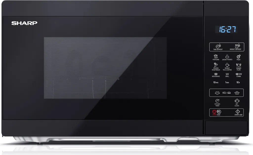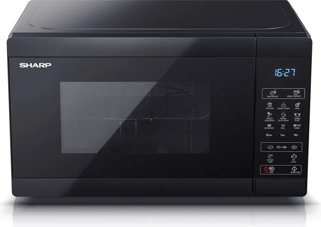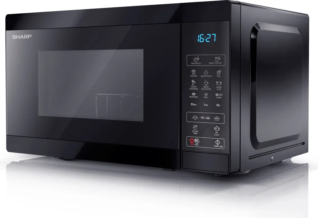 Großzügiges Mikrowellengerät von SHARP in zeitlosem Design: Ob Auftauen, Erwärmen, Grillen oder Garen, das Gerät eignet sich ideal für schmackhafte Fleisch- und Fischgerichte, Gemüse oder das Zubereiten von Popcorn.
