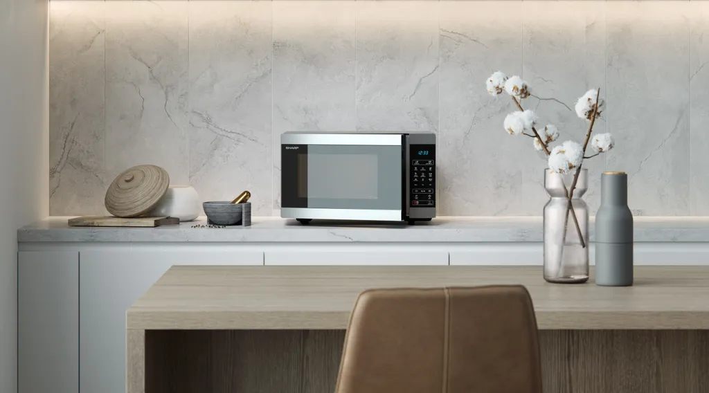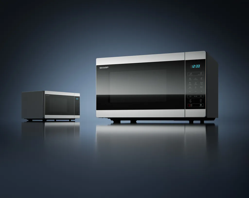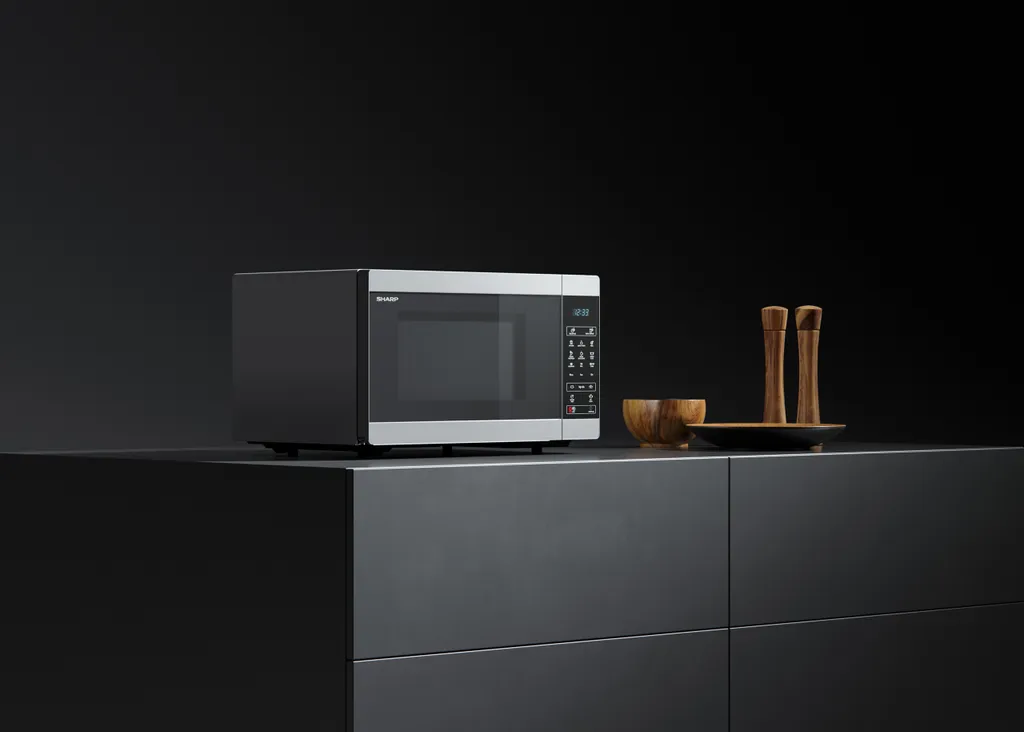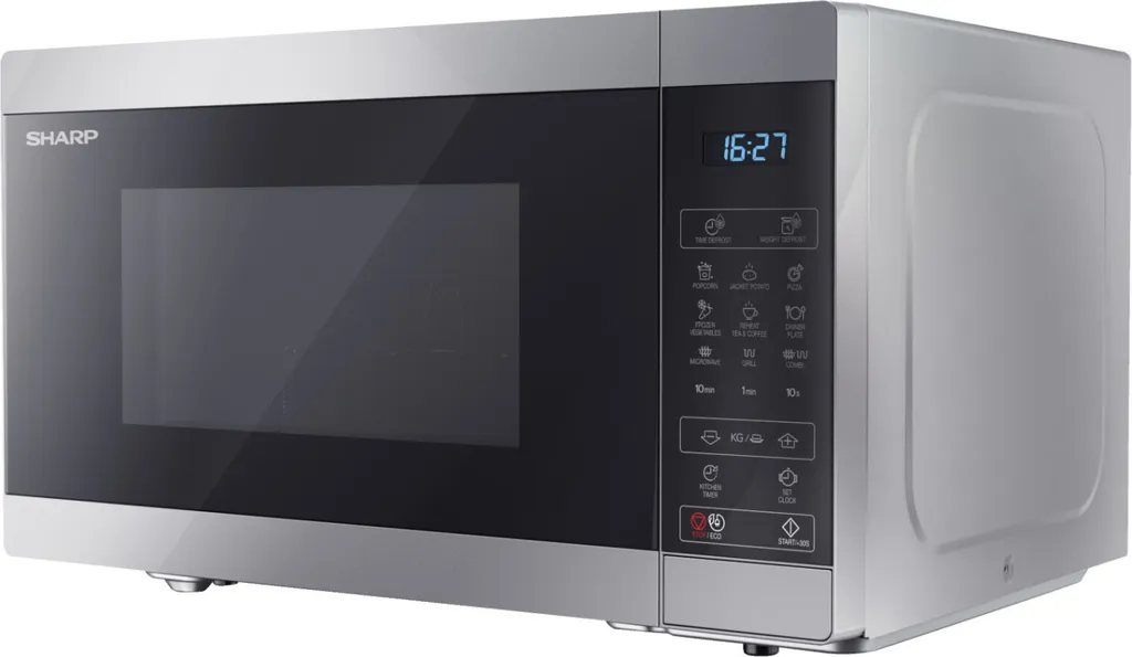 Großzügiges Mikrowellengerät von SHARP in zeitlosem Design: Ob Auftauen, Erwärmen, Grillen oder Garen, das Gerät eignet sich ideal für schmackhafte Fleisch- und Fischgerichte, Gemüse oder das Zubereiten von Popcorn.