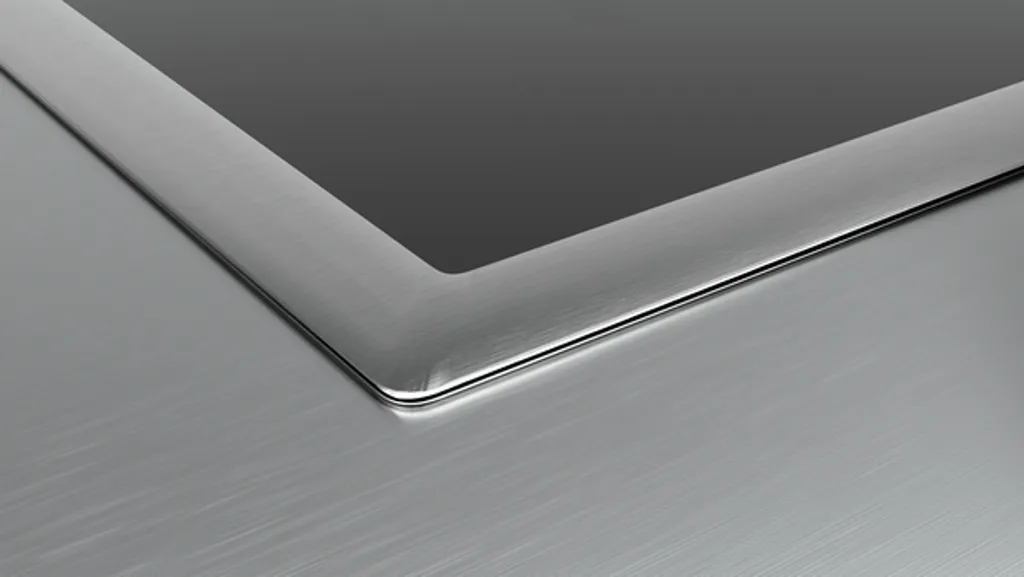 Flachrahmen-Design, Glasschutzbedruckung, 4 highSpeed-Kochzonen, davon 1 mit zuschaltbarer Bräterzone, 1 Zweikreis-Kochzone (21 cm), 4 Restwärmeanzeigen, min. Arbeitsplattenstärke: 20 mm, Bedienung der Kochzonen über die Drehwähler am Einbauherd, Oberflächenfarbe: Edelstahl, schwarz
